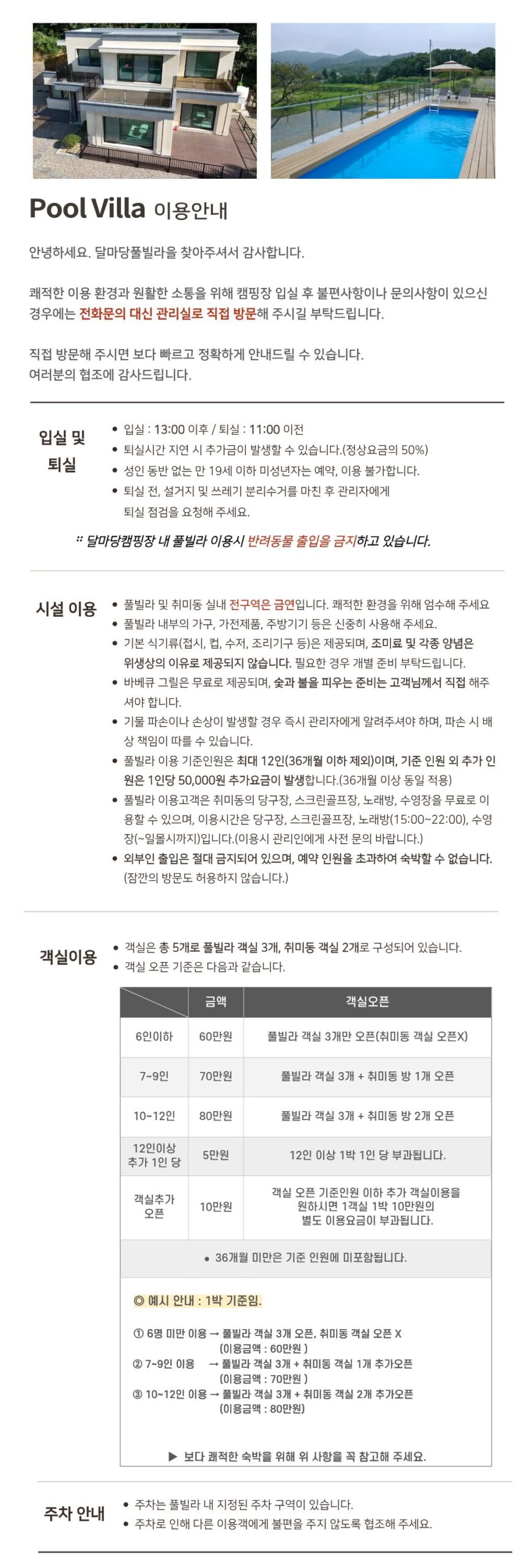 풀빌라 운영안내